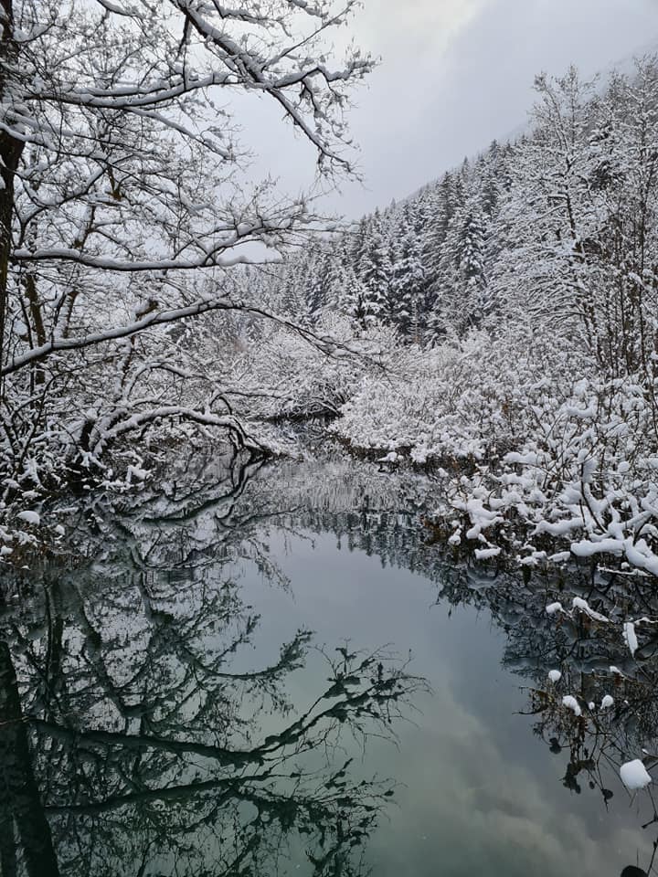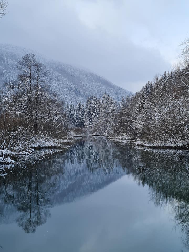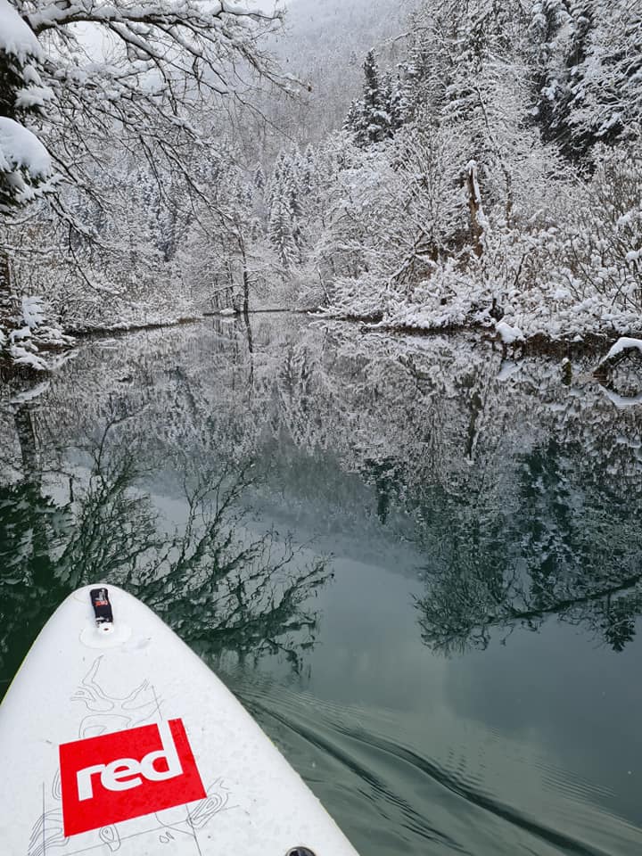 Sledilo je 7km neokrnjene narave, ki je postregla praktično vsem kar zna. Od sneženja, mrzlega vetra in sončnih žarkov. Zasnežena divjina te hitro prevzame pa če prav sem bil na reki že neštetokrat, ne štejem več obiskov. Je nekje izpuhtelo skoraj tri ure.
